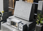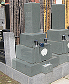 少し珍しい形をしているこの墓石は、台東区の上野、池之端、浅草によく見られる墓石です。この地域は谷中に比べて低地のため、雨水の被害がありお骨を地下に納められません。